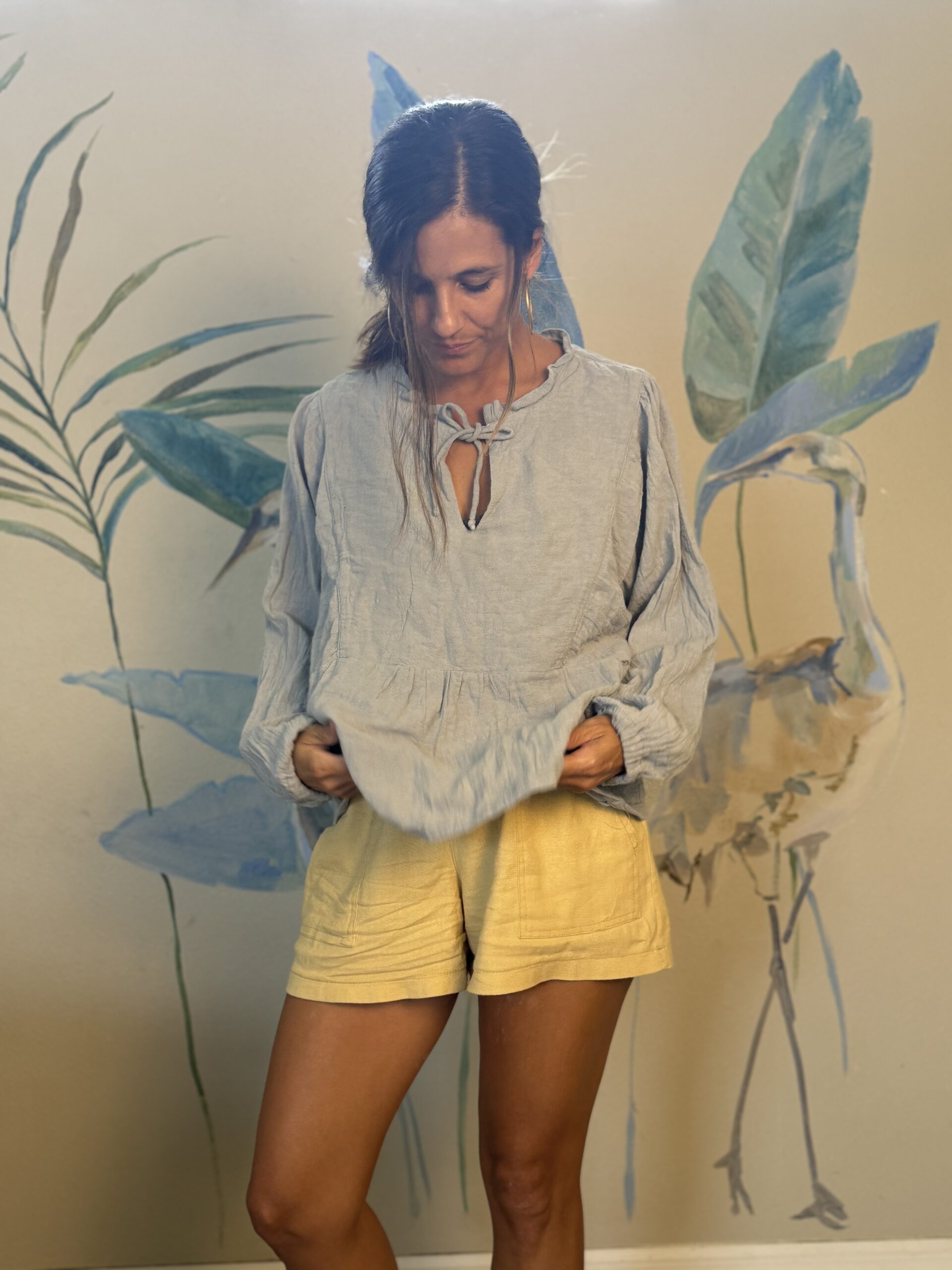Camisa de gasa de100% algodon doble. Suave al tacto, con linda caida. Es ancha, se puede usar el escote abierto o cerrado dependiendo accesorios o peinado! La mas elegida!!!!!!