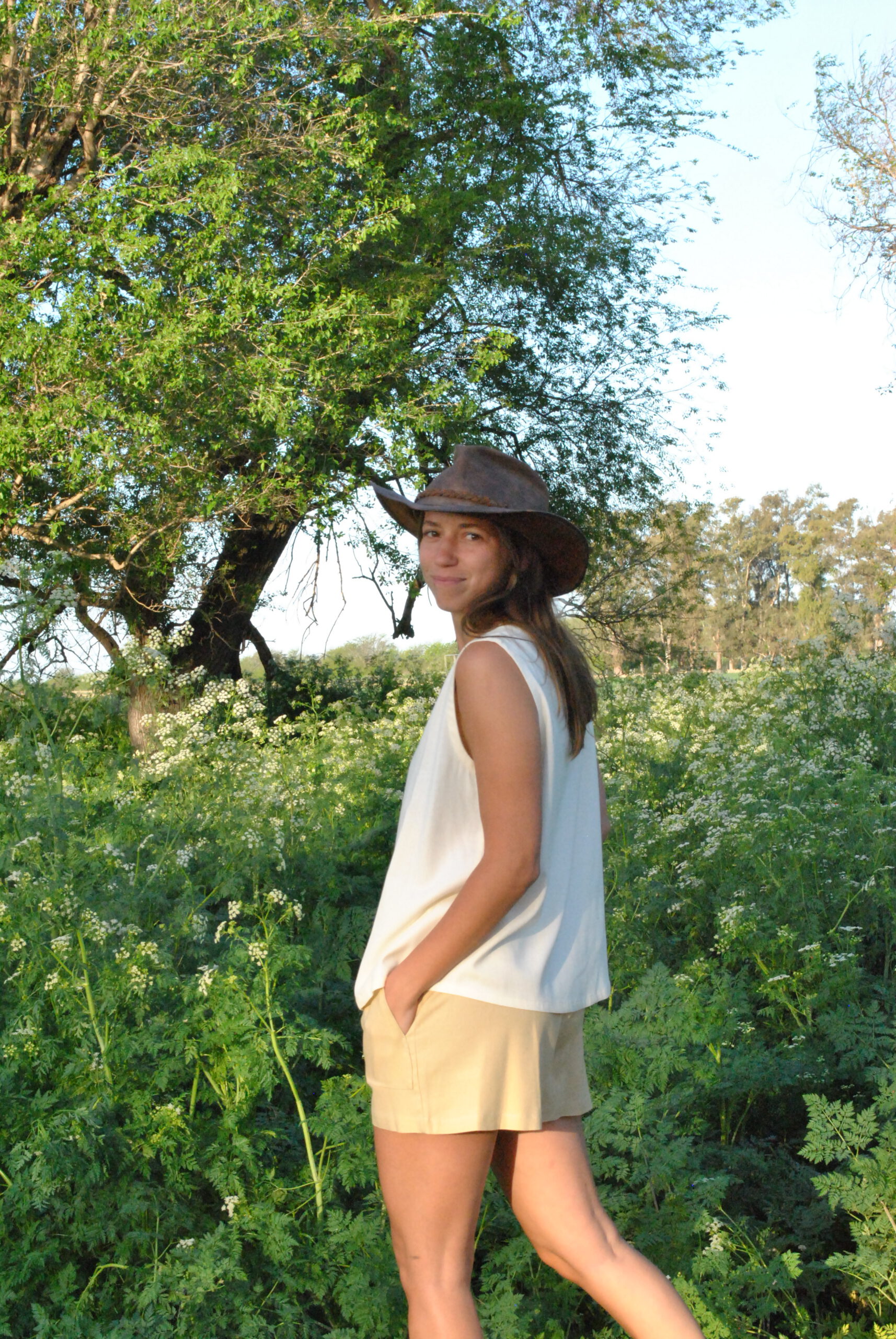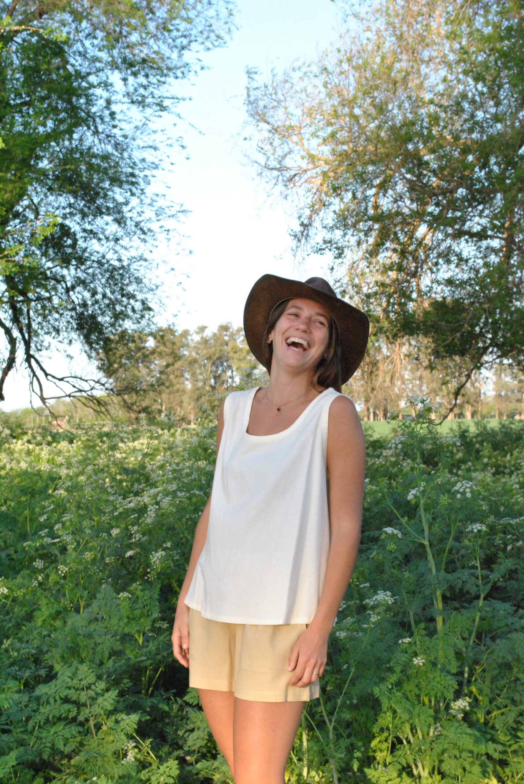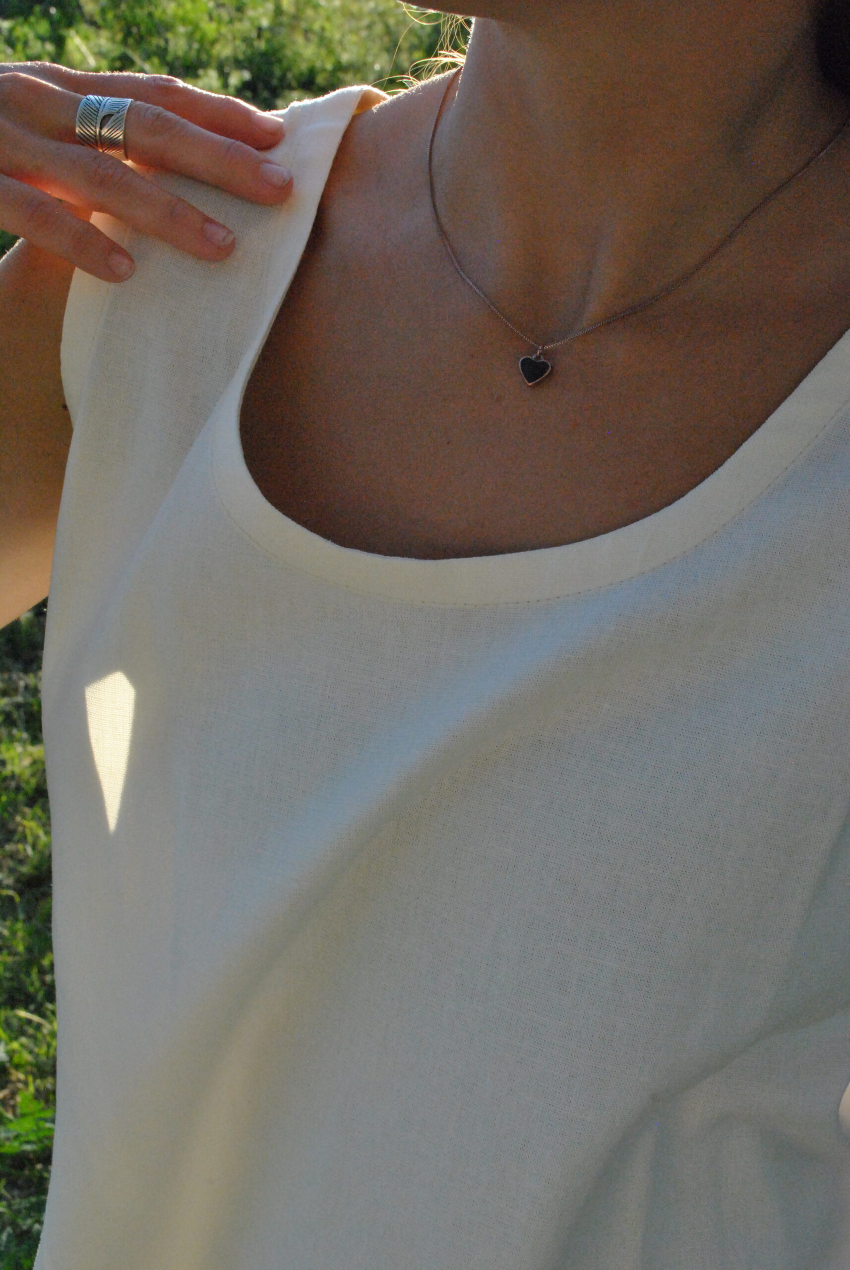 Musculosa de Lino de Algodón con escote redondo. Amplia, comodísima, larga y adaptable a todos los cuerpos.